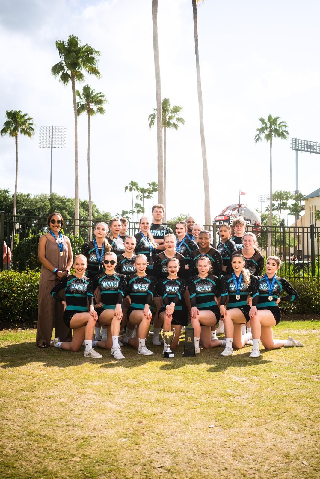 Strahlende Gesichter unter Palmen: Das Cheerleading-Team Impact Crush bei der Weltmeisterschaft in Orlando, USA