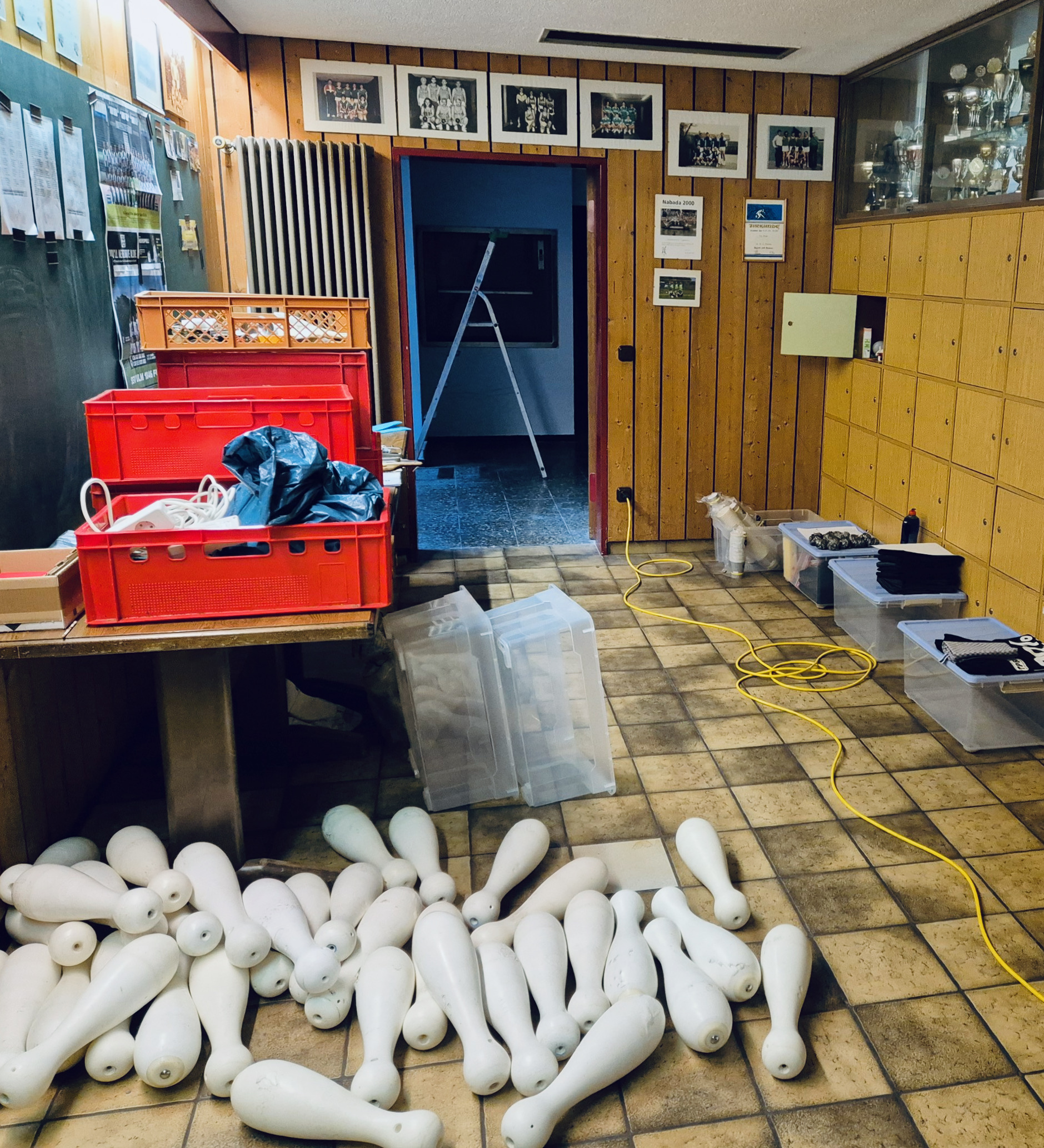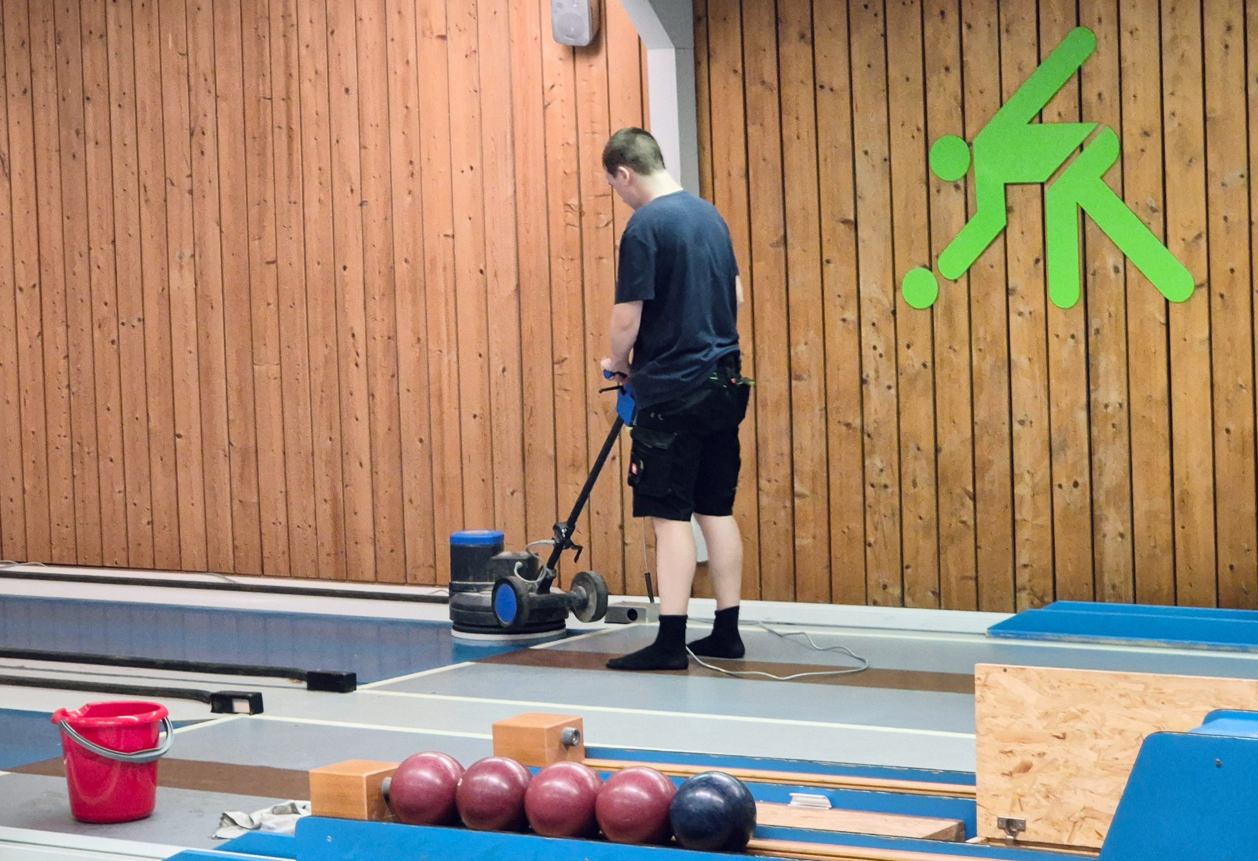 In Vorbereitung auf eine gute und hoffentlich erfolgreiche Kegelsaison 2024/25 wurde beim jährlichen Putz- und Wartungstag alles ordentlich auf Vordermann gebracht: Die gesamte Anlage hat neue Kegel bekommen, der sogenannte Vierpass (d.h. die Fläche untern den Kegeln) wurde geputzt, gebohnert und geschmiert. Ebenso die Kugelrückläufe, die Bahn und der Anlauf.
