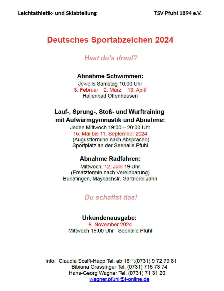 Beim TSV Pfuhl kannst du das Deutsche Sportabzeichen machen – Informationen und die Termine 2024 gibt es hier.