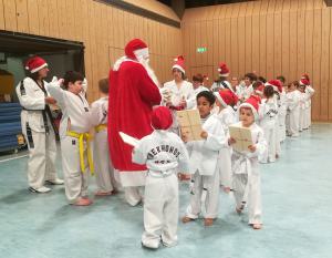 Zwei Wochen später trafen sich dann nach Trainingsabschluss die jugendlichen und erwachsenen Taekwondo-Sportler zu einer kleinen Spontan-Weihnachtsfeier – zumindest fast spontan, denn ein bisschen was war doch vorbereitet: Punsch, Plätzchen und ein paar weitere Leckereien. Ein wirklich schönes Beisammensein nach einem noch schöneren Trainingsjahr.